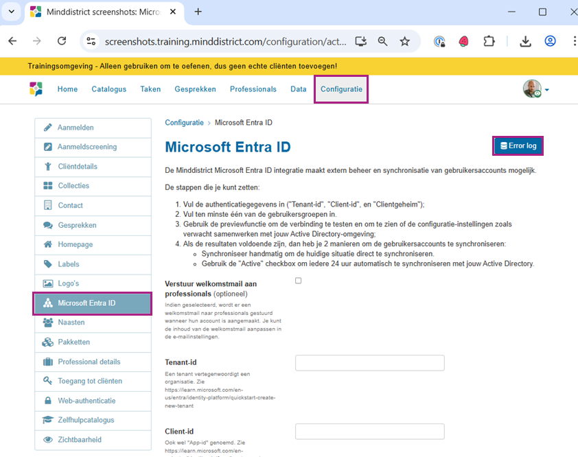 Maakt jouw organisatie gebruik van Microsoft Entra ID (voorheen Active directory)? Combineer! Dan wordt het mogelijk om vanuit dezelfde registratiebron ook geautomatiseerd Minddistrict accounts voor medewerkers aan te maken en te updaten.